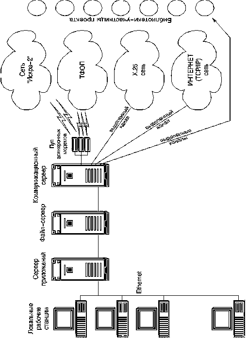 Кроме того, необходимо обеспечение мультидоступа по различным видам каналов связи: коммутируемым телефонным каналам сетей общего пользования, выделенным и специализированным каналам ("ИСКРА-2" и др.), X025, TCP/IP, радиорелейным и спутниковым, с целью предоставления пользователям наиболее предпочтительного вида доступа.