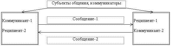 А.В. Соколов сравнивает также понятия коммуникация и общение, показывает различные варианты их соотношения [1, с. 24-30]. Однако среди них отсутствует такой: общение - один из вариантов коммуникационного отношения между субъектами, предполагающий обязательную обратную связь, в процессе которой коммуникант и реципиент меняются ролями. Считаем, что это значение может послужить основой для различения информационной коммуникации вообще и общения как ее особой разновидности. Его можно представить и на элементарной схеме общения (рис. 2). Коммуникация не всегда включает обратную связь (от реципиента к коммуниканту), но она возможна, а общение обязательно подразумевает двухстороннюю связь.